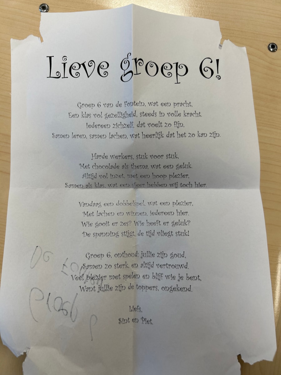 We hebben het ‘ik hou van Sinterklaas’ spel gespeeld met elkaar. Na iedere ronde mochten 4/5 kinderen hun surprise uitpakken. Wat zijn er mooie surprises gemaakt zeg! Onze complimenten!