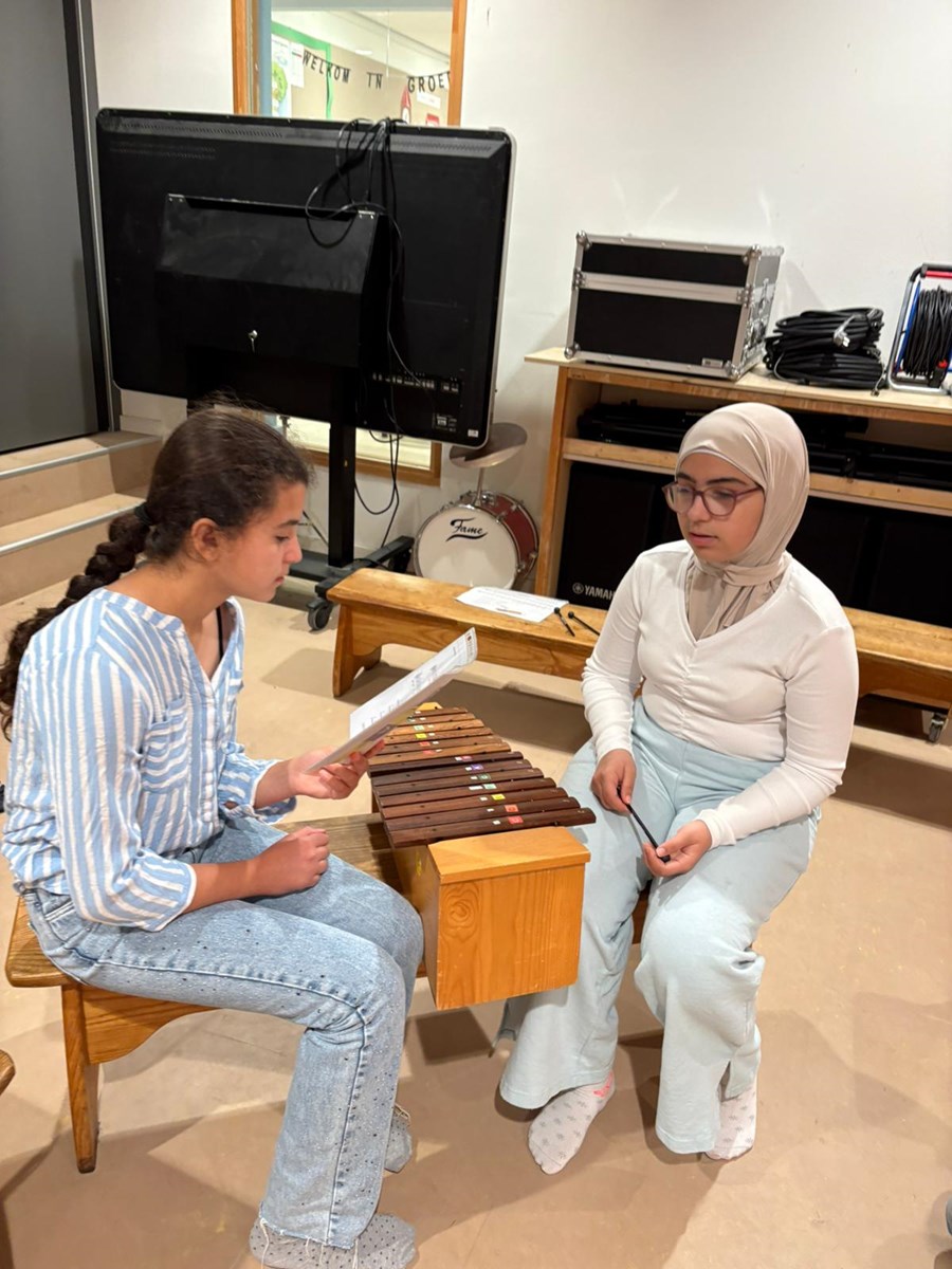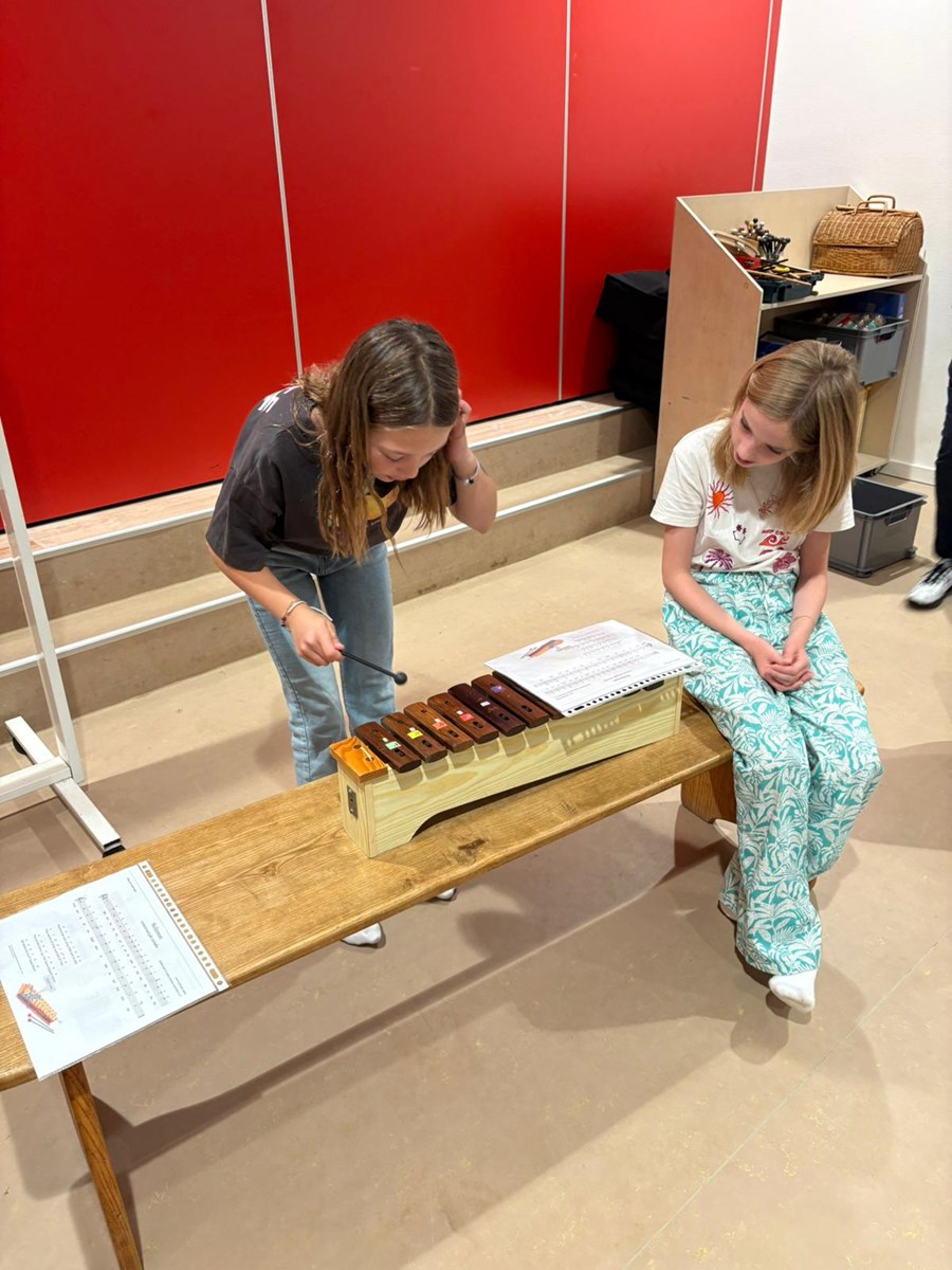 Om de week starten we op maandag ochtend met muziekles van juf Marieken. De afgelopen keer dat we dat hadden, mochten we met xylofoons aan het werk. In tweetallen proberen we het liedje dan aan te leren.