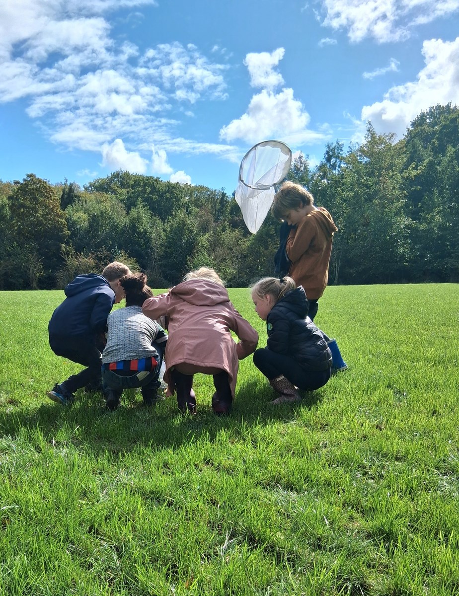 Wat een heerlijke middag hadden we in het bos. De boswachter liet ons zien hoe we vliegende, kruipende en zwemmende kriebelbeestjes konden vangen. Op avontuur in de natuur!