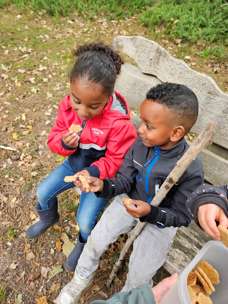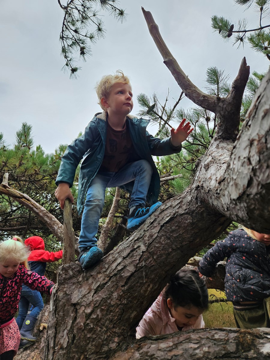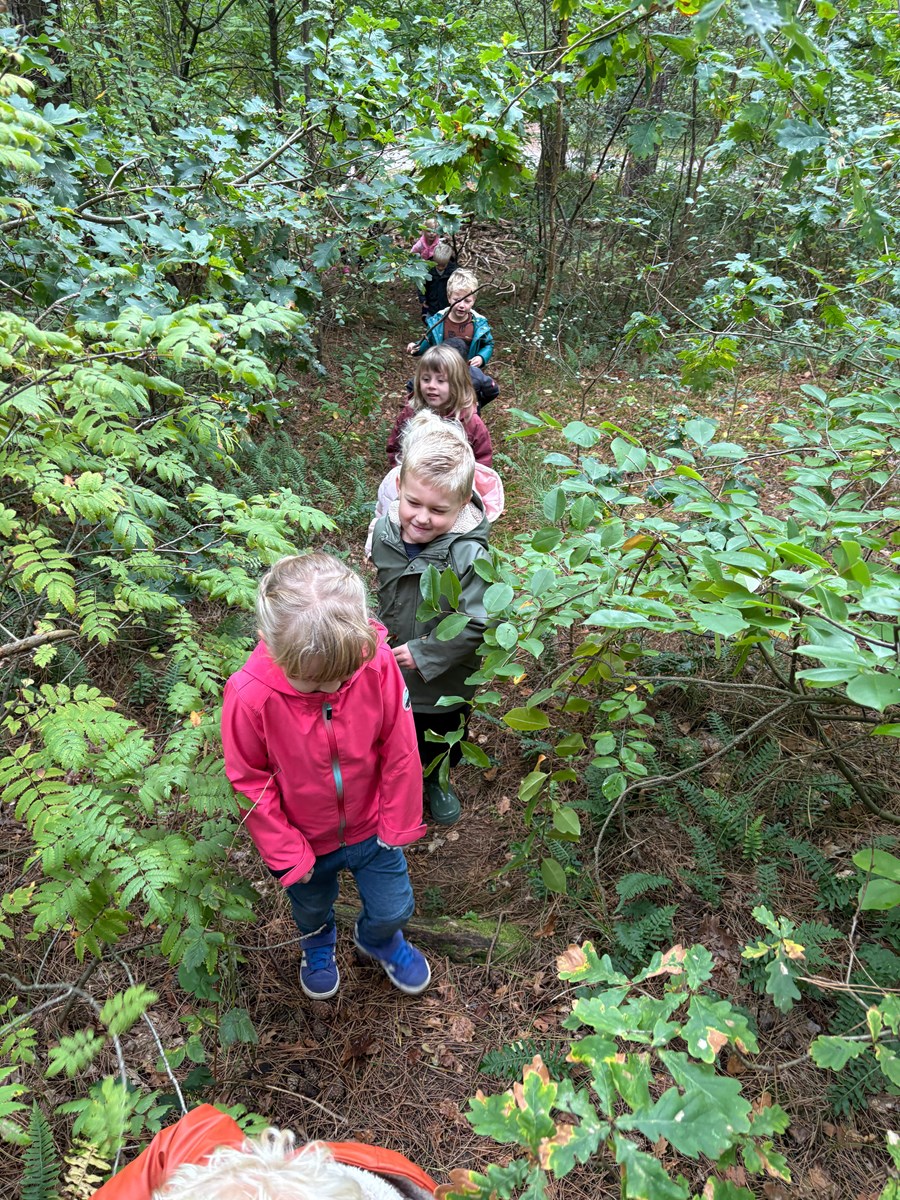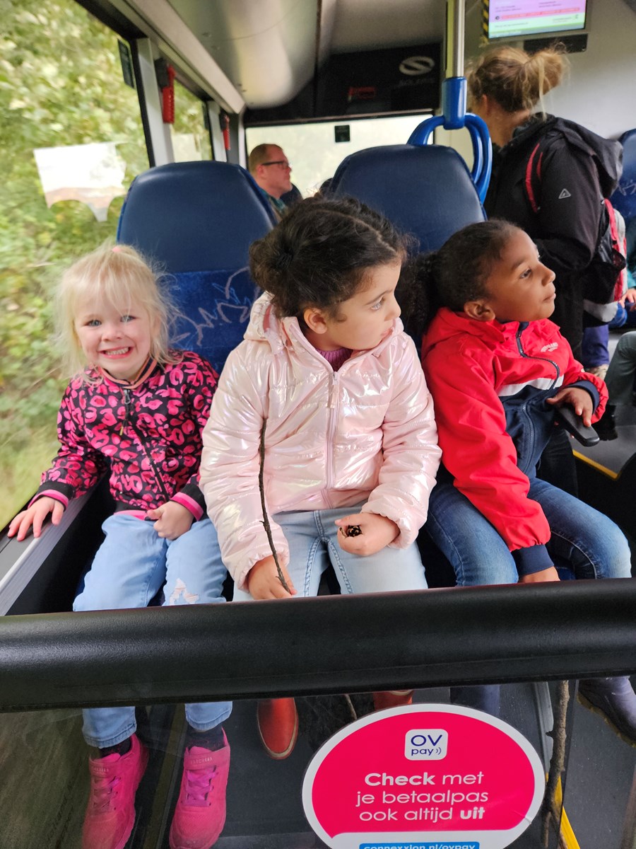 Vrijdag gingen we dan echt op pad naar het bos. De busrit was natuurlijk weer een groot avontuur. In het bos hebben we weer van alles ontdekt en gezien. We hebben de wortels van een boom goed bekeken, het verschil in de bomen ontdekt, geklommen in de bomen en natuurlijk een zelfgebakken koekje gegeten.