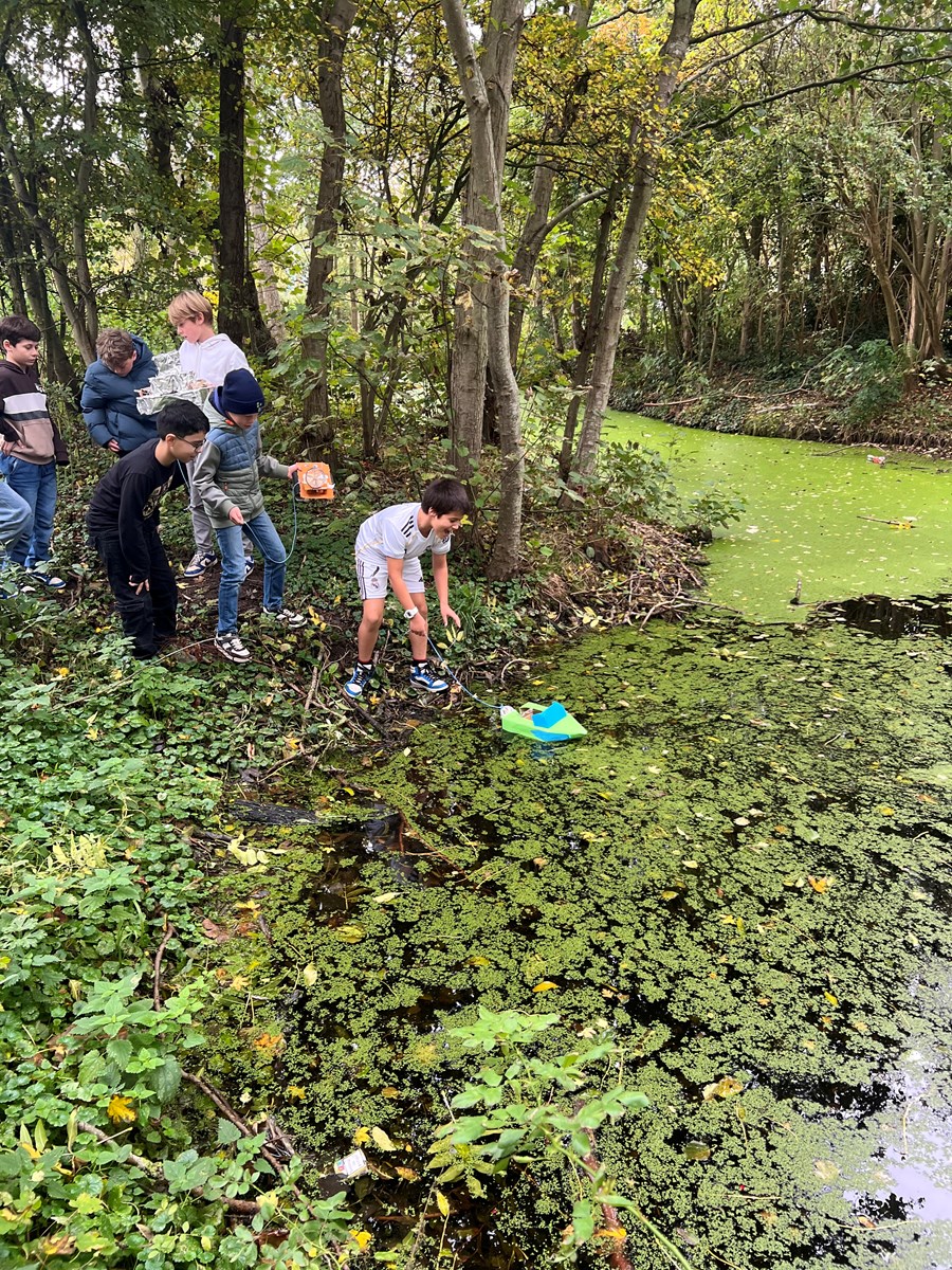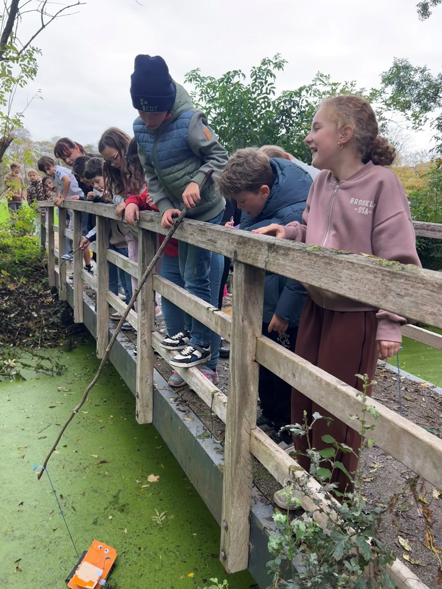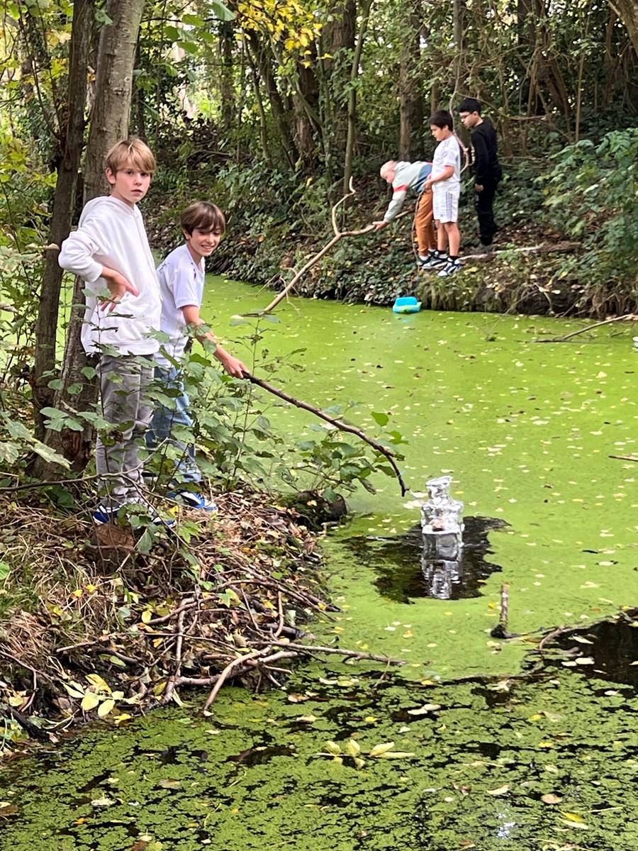 In groepjes bouwden de kinderen hun eigen schip: van zeilboten tot piratenschepen en cruiseschepen. Daarbij dachten ze na over materiaalgebruik, evenwicht en drijfkracht — en gisteren kwam het grote moment: de proefvaart op de eendenvijver!