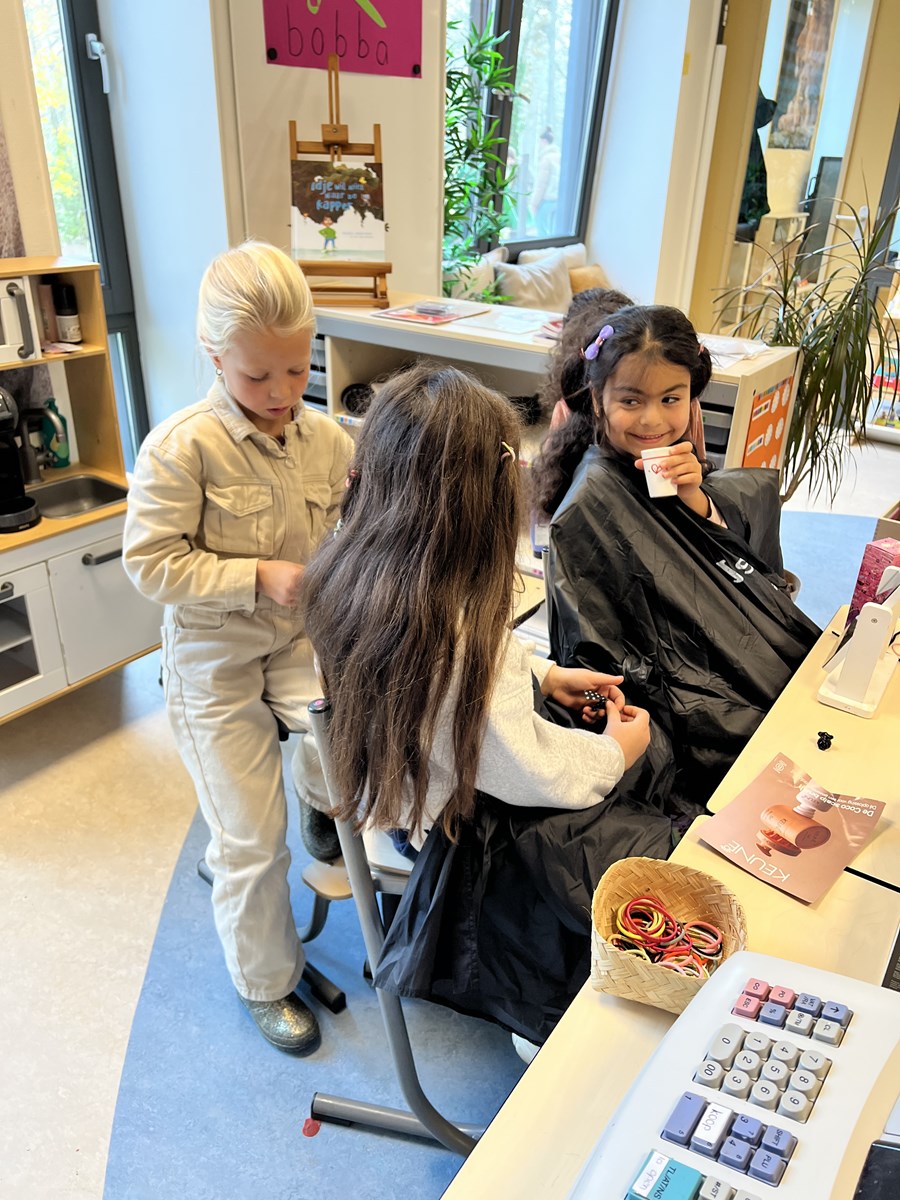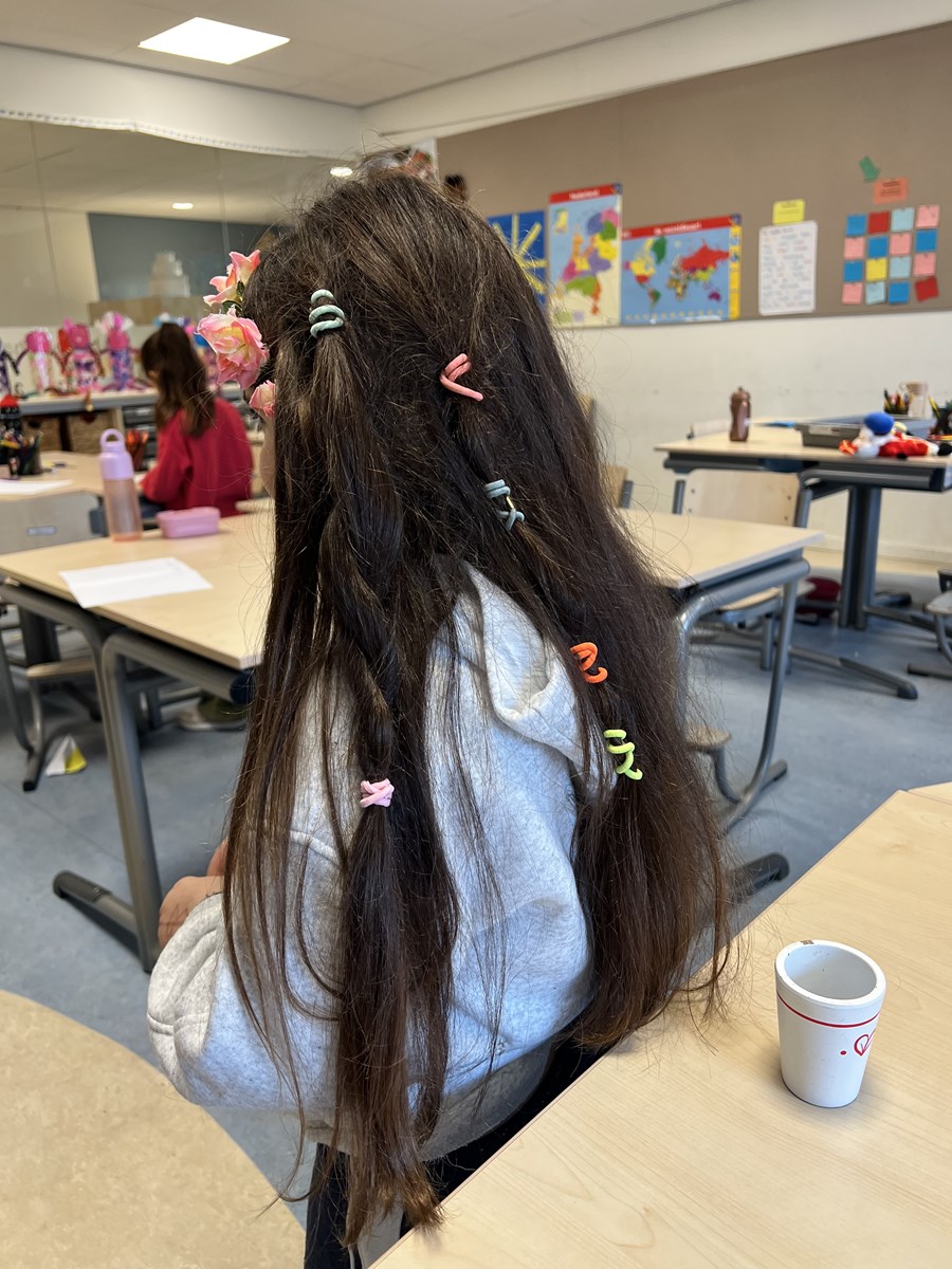 In de kring vertelden we over onze eigen kapperservaringen: wie is er wel eens naar de kapper geweest en wat deed de kapper precies? Daarna hebben we opgeschreven wat we al weten over het kappersvak en dit met elkaar gedeeld. In tweetallen zijn we in de boeken gedoken en hebben we vragen opgeschreven die we verder willen onderzoeken en die we straks aan een échte kapper willen stellen!
