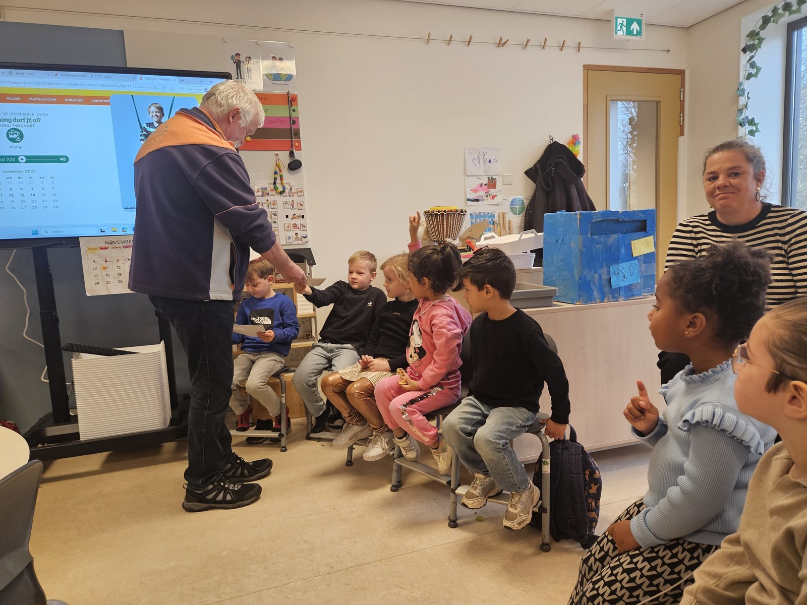 De drukke decembermaand komt eraan. Sinterklaas en zijn pieten zijn onderweg en daarna vieren we massaal Kerst. Als postbezorger Malti ons dan ook vraagt om onze hulp dan is er geen enkele twijfel bij de kinderen. We hebben eerst gekeken wat we allemaal al weten door het maken van een woordweb, waar de één tekent, krabbelt de ander en weer een ander schrijft al de eerste woordjes. Vanuit daar weten we wat we nog moeten leren. In de klas maken we gebruik van boekjes, materialen, filmpjes en daarnaast hebben we ook nog bezoek gekregen van een echte postbode. Dit alles zorgt ervoor dat we steeds meer weten en straks klaar zijn om de Pieten ook echt te gaan helpen!