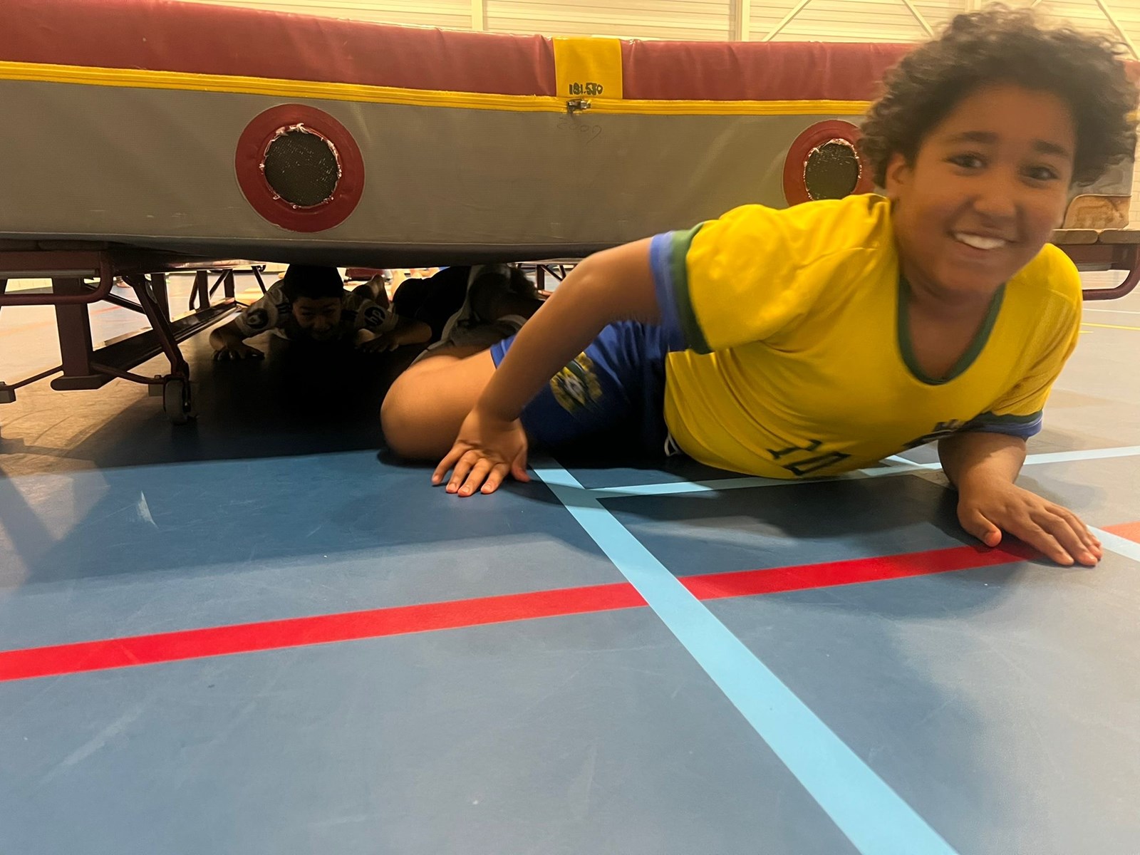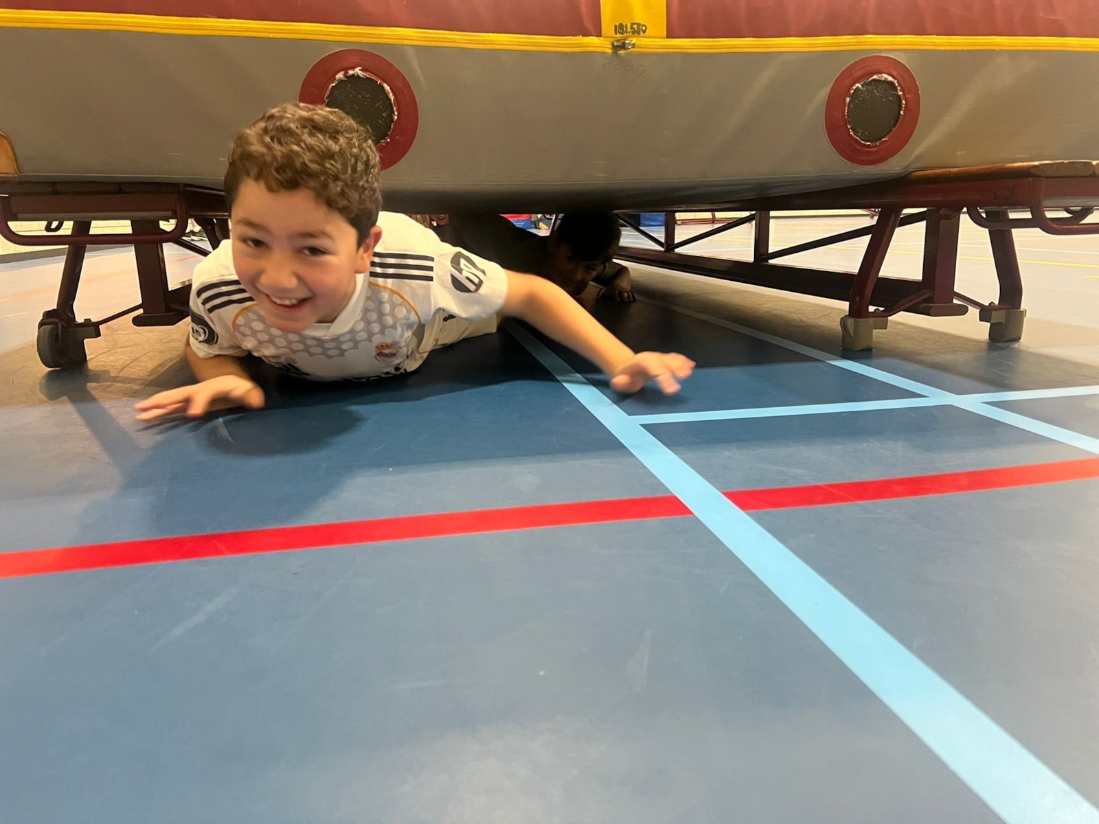 Woensdag hadden we een stormbaan bij de gymles die georganiseerd was door groep 6. Ook hartstikke leuk! Over van alles heen, maar ook onder de mat door. Het hield ons lekker bezig!