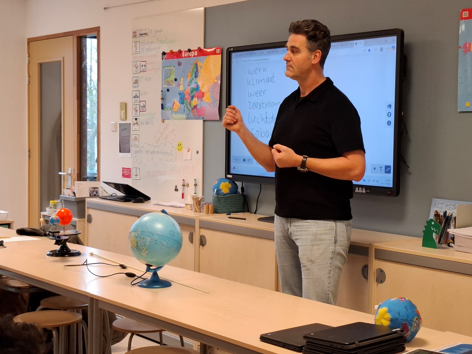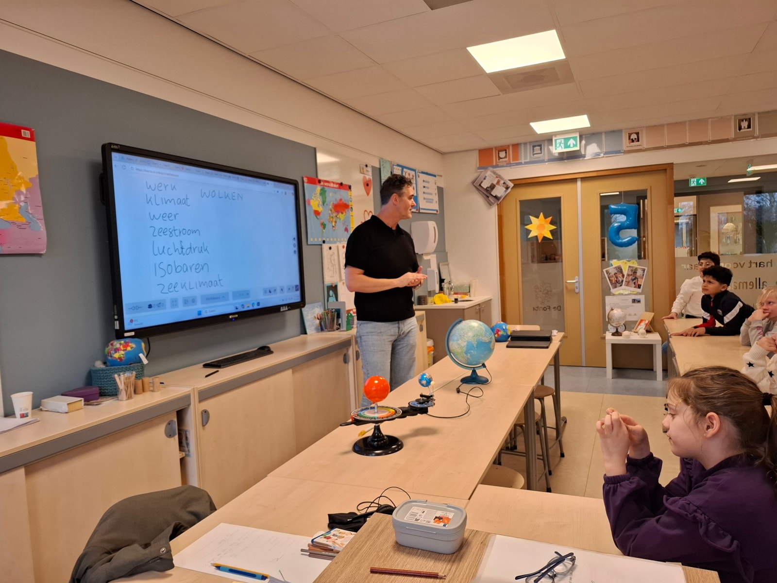 Vanmiddag kwam de papa van Owen bij ons in de groep om een gastles te geven.. De papa van Owen is piloot en als piloot let je altijd goed op het weerbericht!