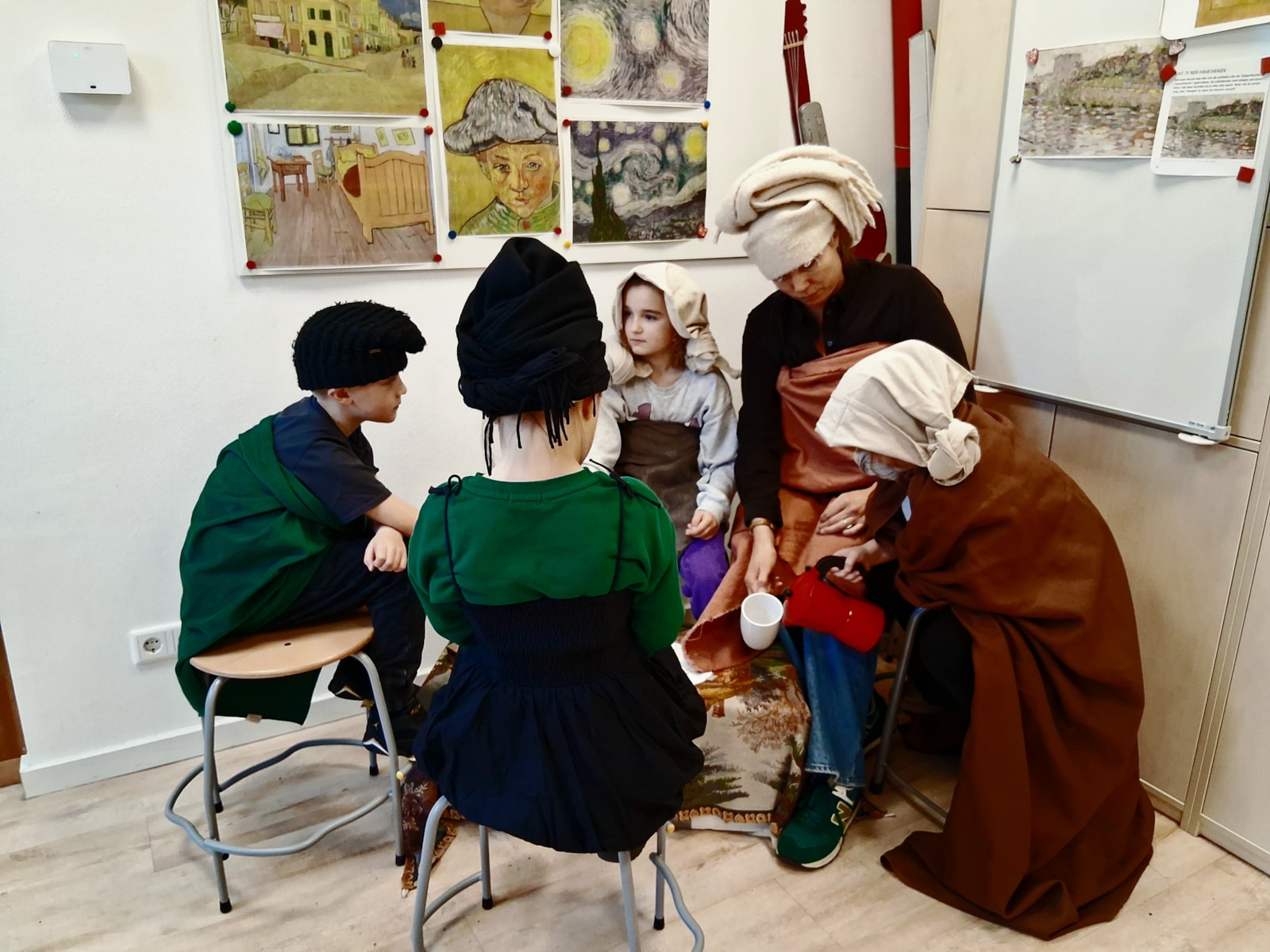 We hebben deze week aandacht besteed aan de Aardappeleters. Er zijn kinderen bezig met een weetjes poster en we maken een levend schilderij door heel goed te kijken.
