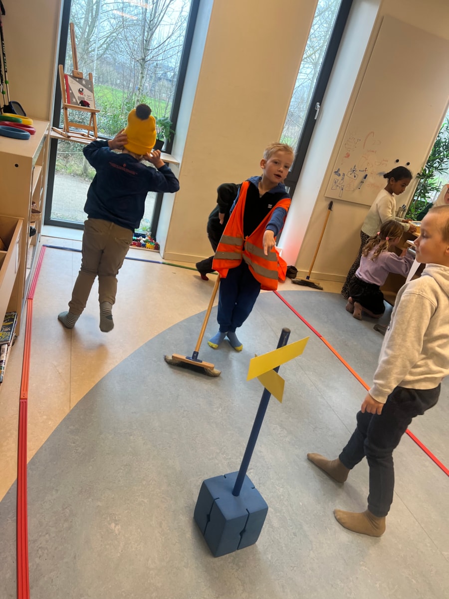 Maar oh nee… er zat een gat in het ijs, oftewel een wak! Samen hebben we onderzocht hoe we dit probleem kunnen oplossen én voorkomen. We ontdekten dat daar ijsmeesters voor nodig zijn. Deze taak werd zeer serieus genomen: de ijsmeesters trekken hun werkhesje aan en boenen het ijs weer mooi glad en veilig.