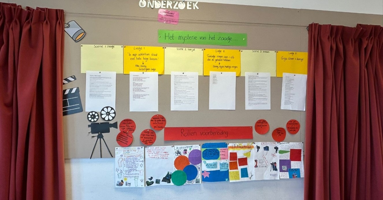 De leerlingen gaan ook aan de slag met het schrijven van een eigen toneelstuk: Het mysterie van het zaadje. Daarnaast onderzoeken zij de verschillende rollen binnen het theater, zoals acteur, regisseur, choreograaf, visagist, decorontwerper, kostuumontwerper en licht- en geluidstechnicus. Hun bevindingen verwerken zij in posters.
