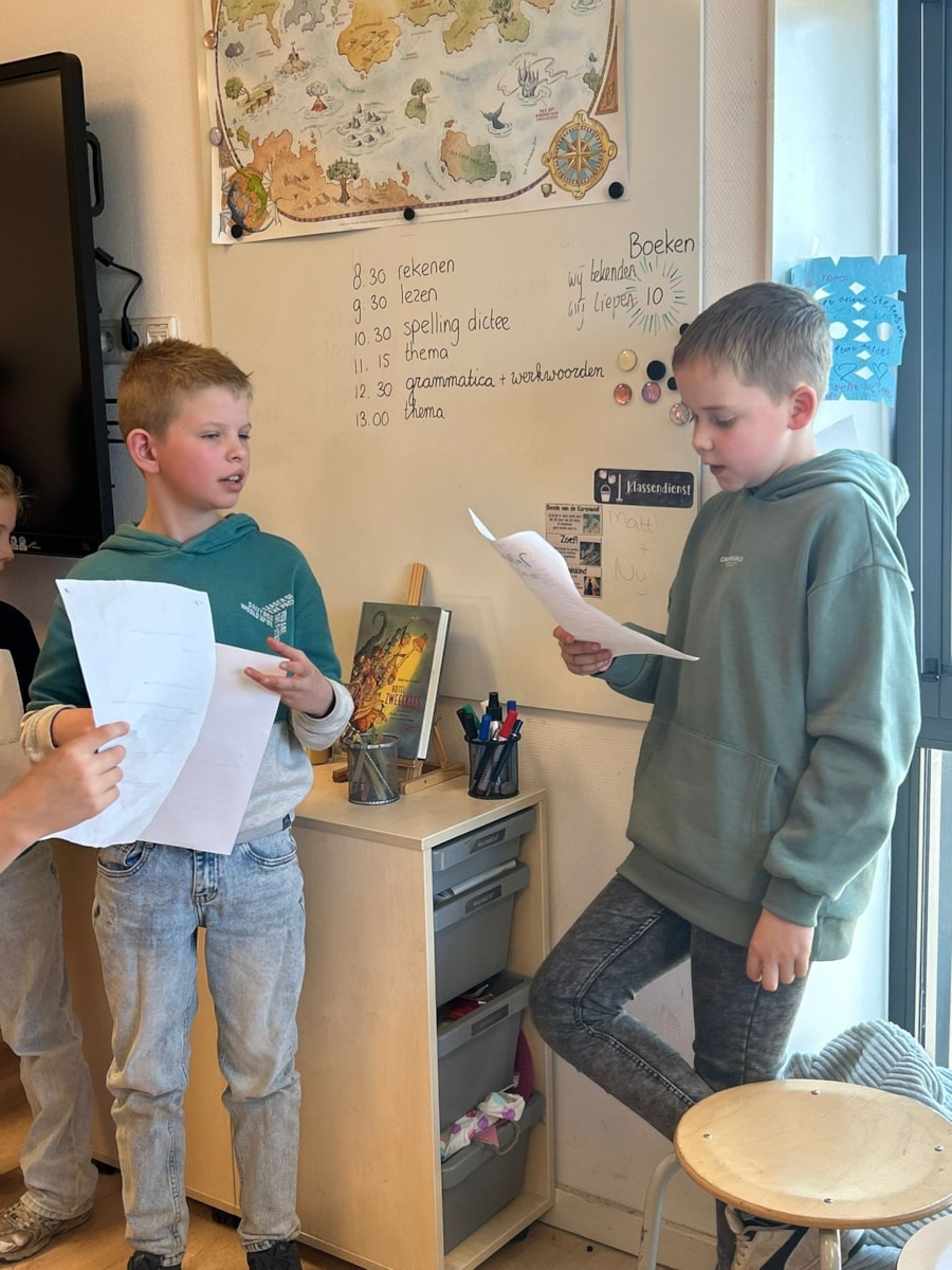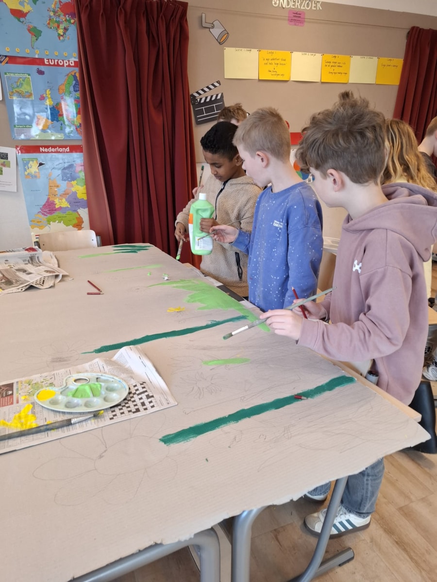 Met input van de leerlingen werkt juf, in de rol van regisseur, de scènes verder uit. Samen zoeken we passende liedjes en bewerken we deze zodat ze goed aansluiten bij het verhaal.