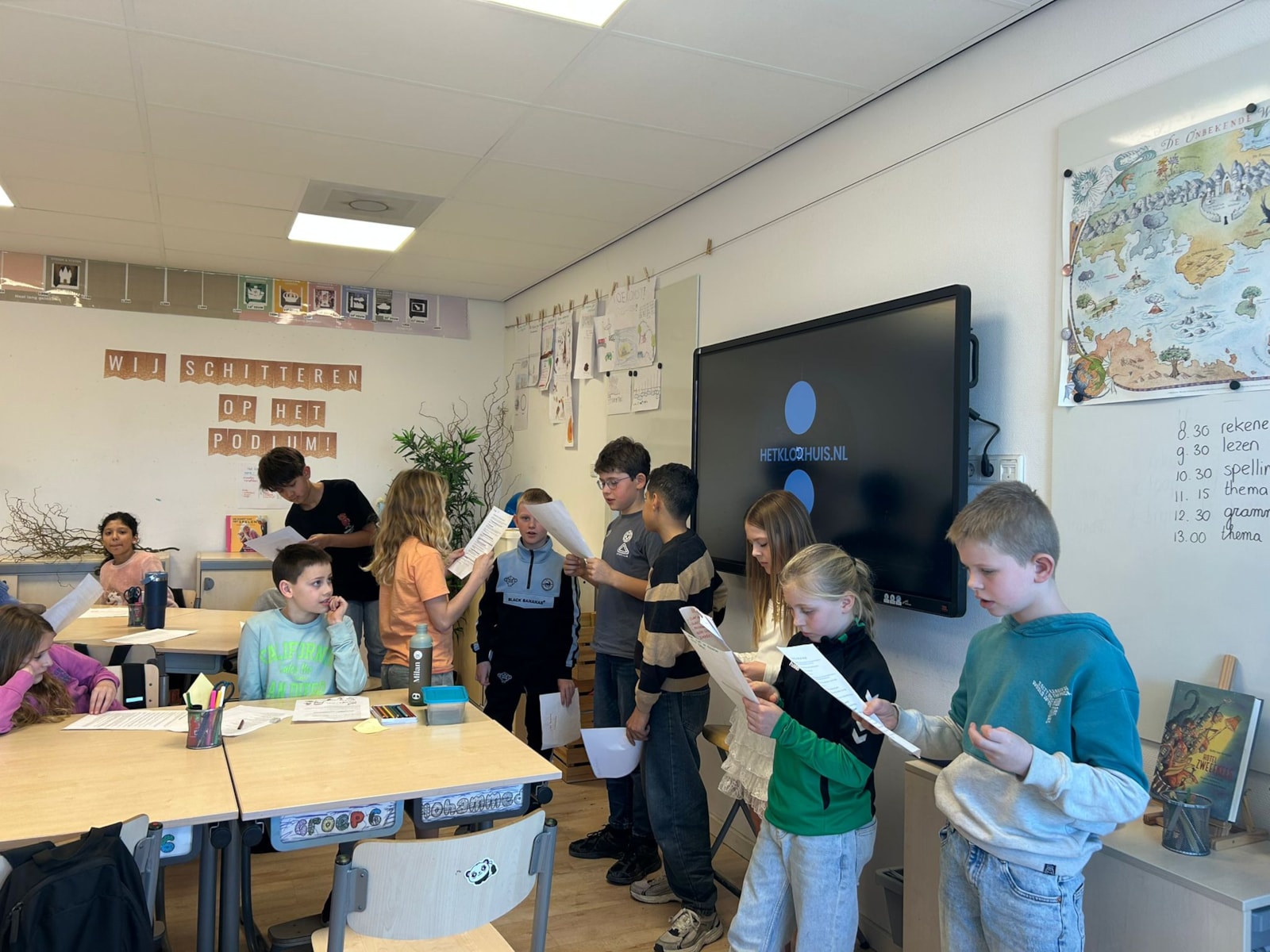 In groep 6 werken we aan onze nieuwe sociaal-culturele praktijk: Wij schitteren op het podium. In deze praktijk maken de leerlingen kennis met de wereld van theater en alles wat daarbij komt kijken.
