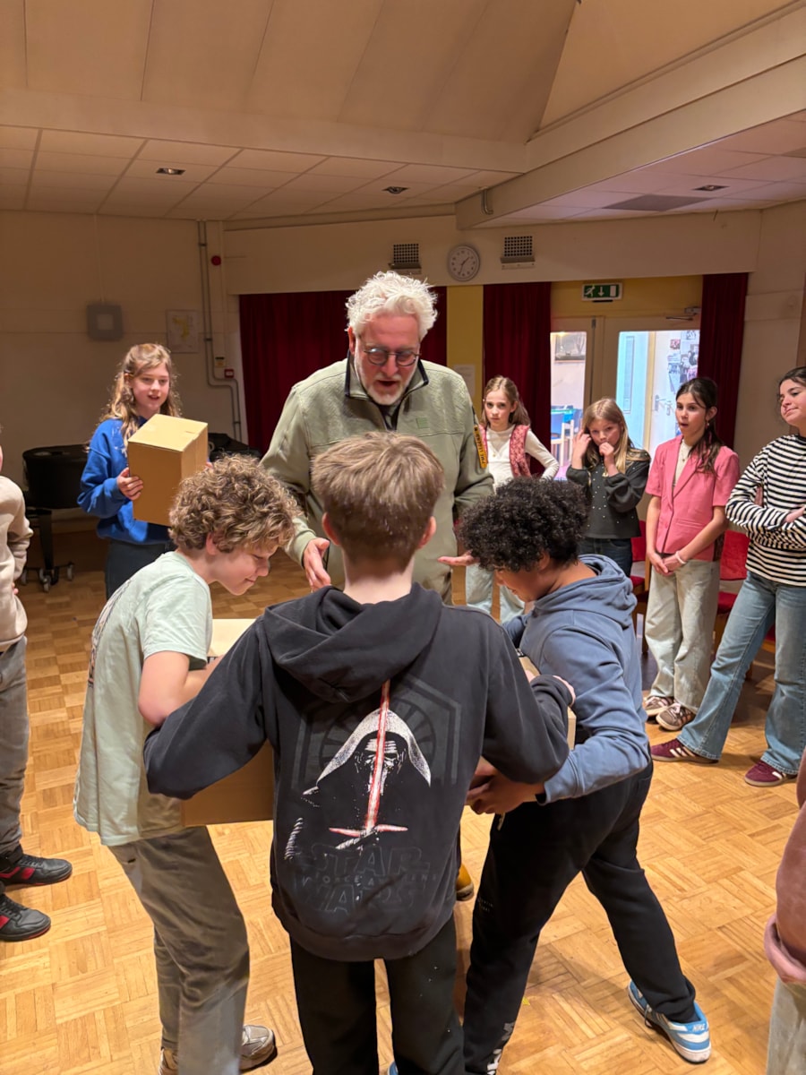 Het is de bedoeling dat de kinderen nu thuis hard gaan oefenen met hun rol, zodat we na de meivakantie zonder boekje kunnen spelen.