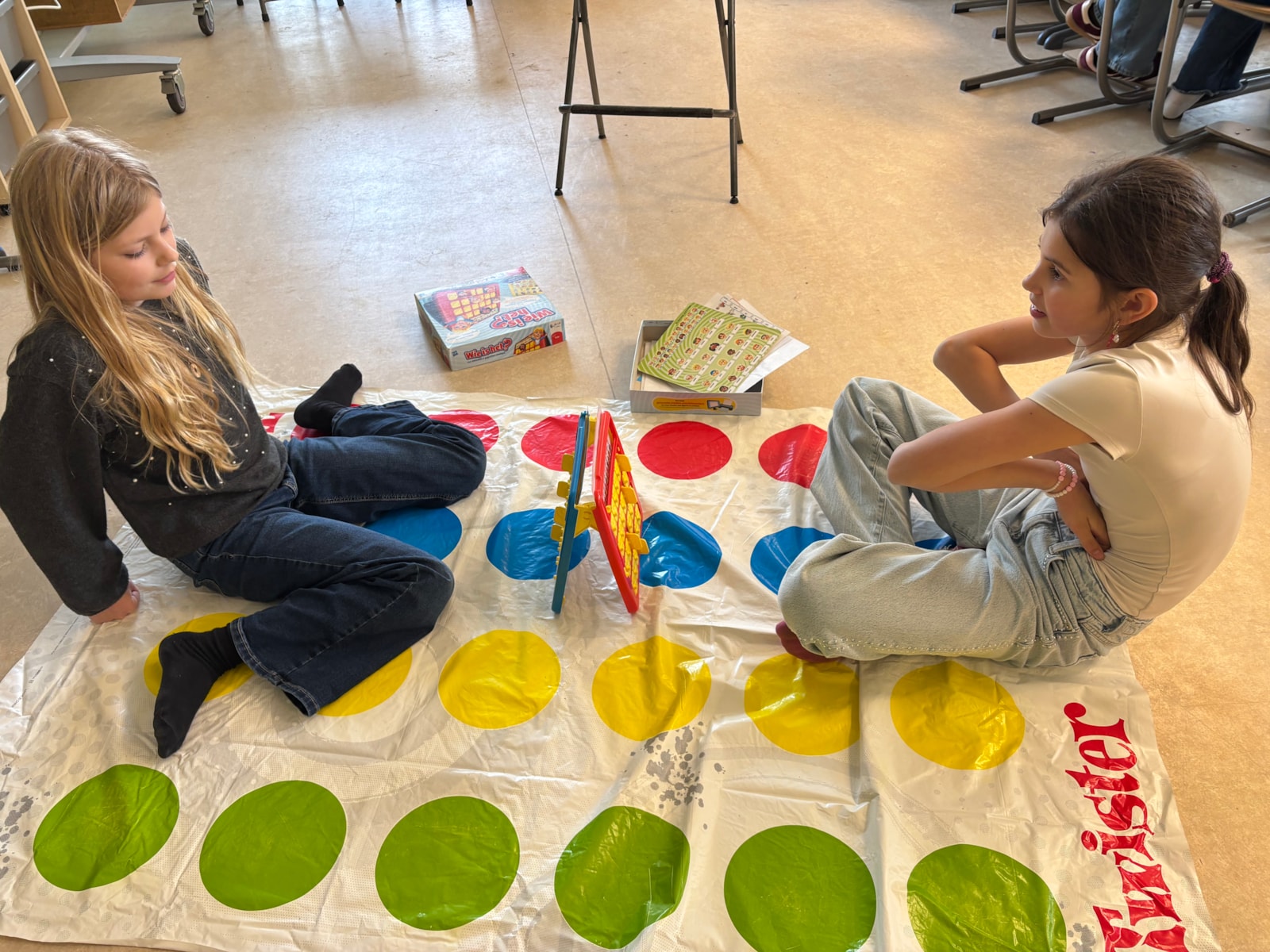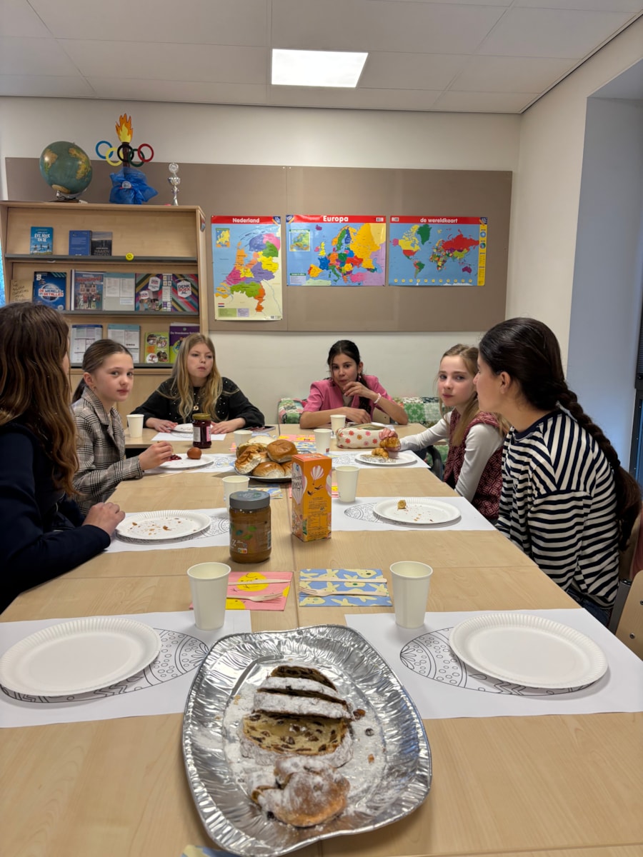 Vandaag hebben we een gezellig paasontbijt gehad en daarna een viering in de kerk. Met een maatje uit een andere groep, liepen we in een lange rij naar de kerk. Na het samenzijn in de kerk hebben we met de hele school buiten gespeeld.